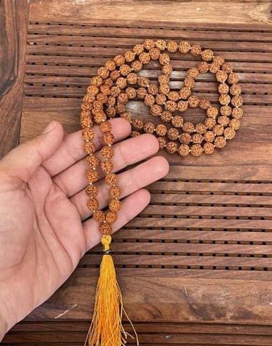 This is a divine Rudraksha beads mala. This is a five Mukhi Rudraksha beads mala with 108+1 beads with a beautiful orange colour tassel.