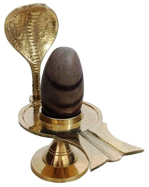 Numeroastro Narmadeshwar Shivling (2.5 Cms Approx) with Detachable Brass Jalheri and Brass Snake Hood Shiv Lingam (1 Pc)